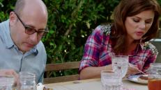 Nothing says Texas like barbecue and that's exactly what Tiffani Thiessen brings to the table for her White Collar co-stars Sharif Atkins, Tim DeKay and Willie Garson. Tequila Peach Tea, Pimento Cheese Spread and fall-from-the-bone BBQ Ribs that have been rubbed and sauced go with Southern Greens done with bacon and a spicy vinaigrette. To finish off the meal, Tiffani brings in one of her favorite pecan pies to top with her Homemade Vanilla Bean Whipped Cream.